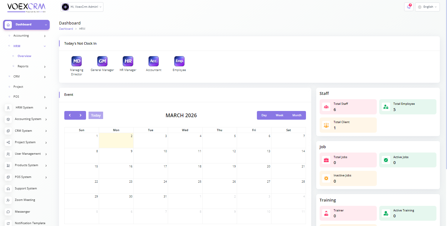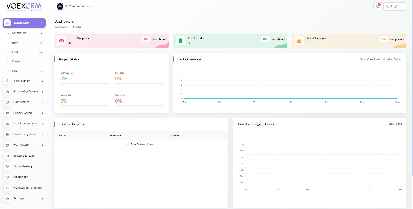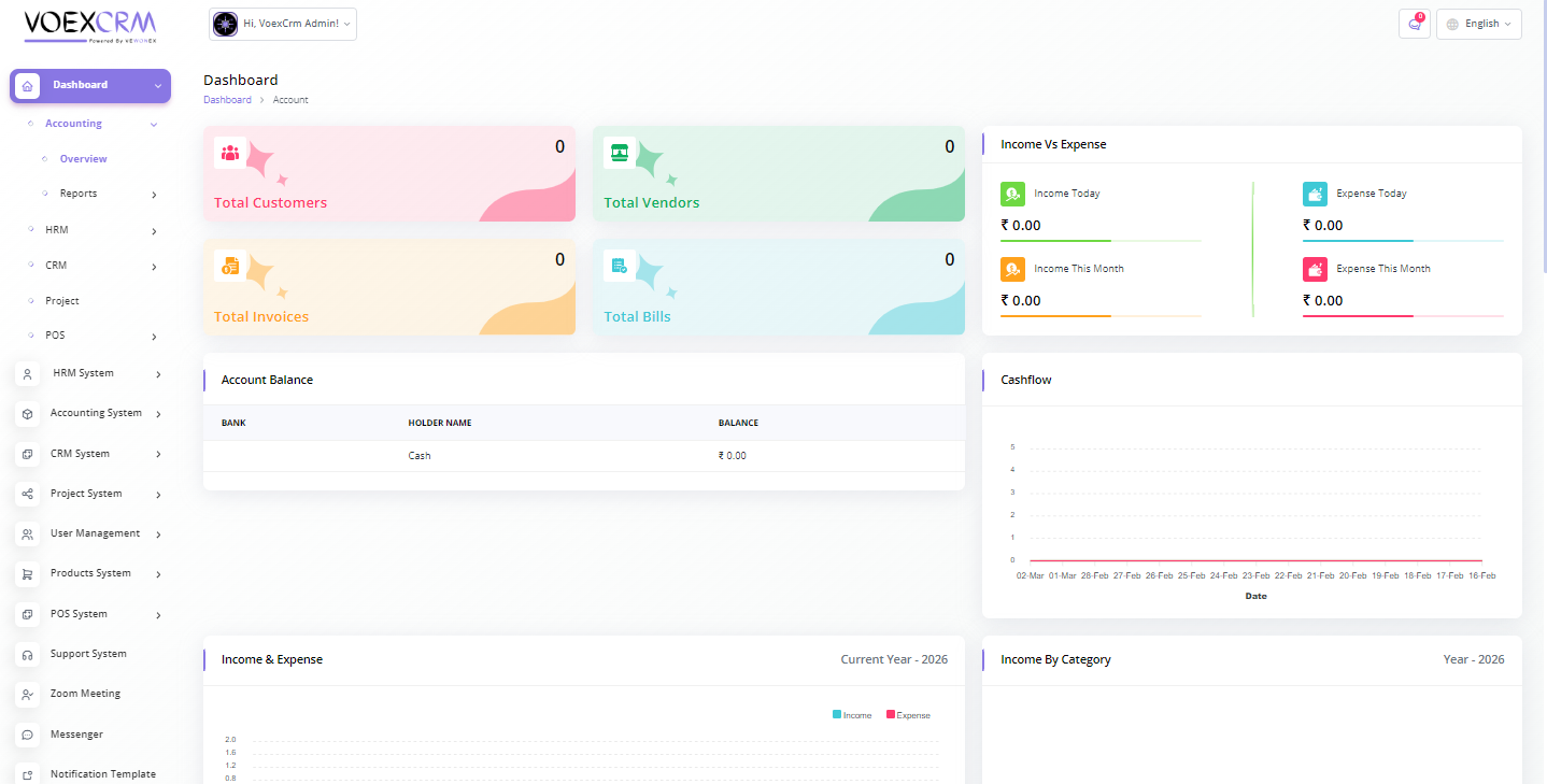 VoexCrm SaaS All In One Business ERP With Project, Account, HRM, CRM & POS